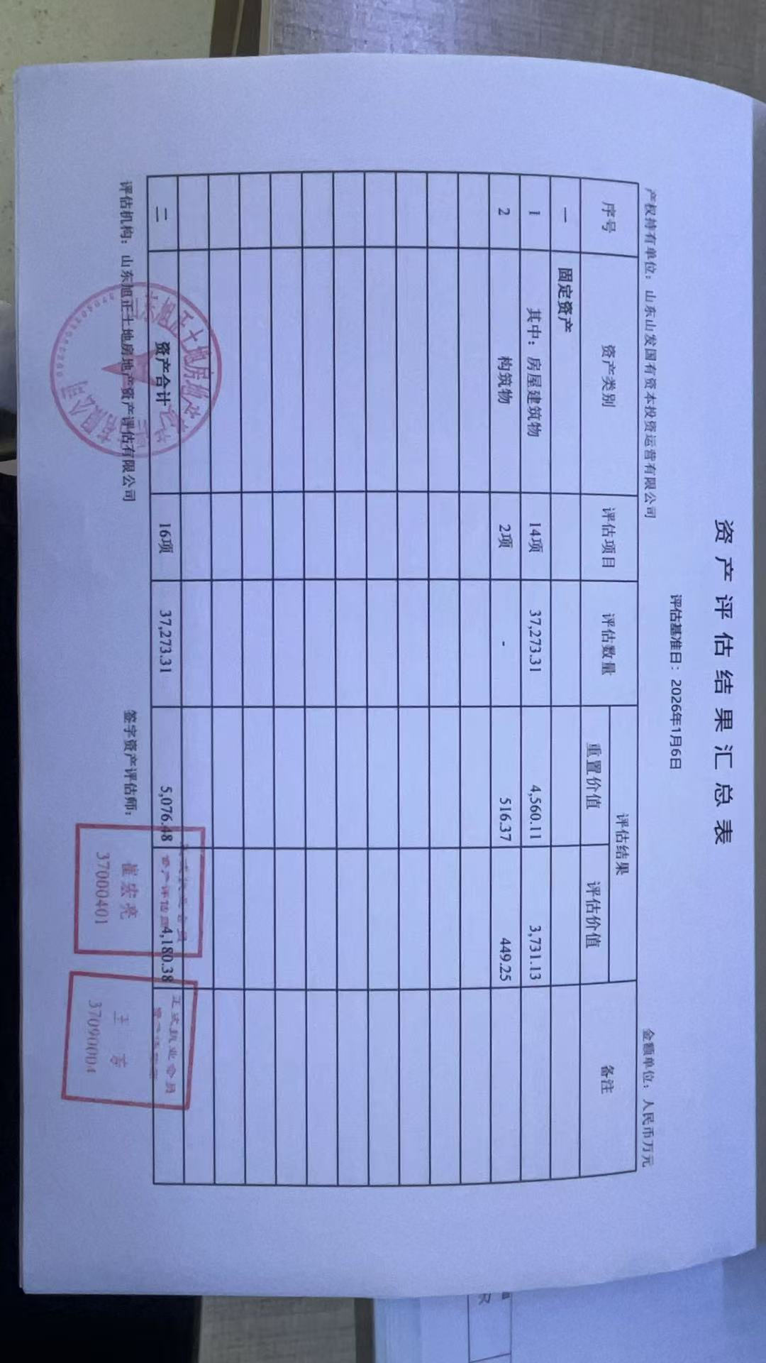 | 评估机构山东旭正土地房地产资产评估有限公司 |