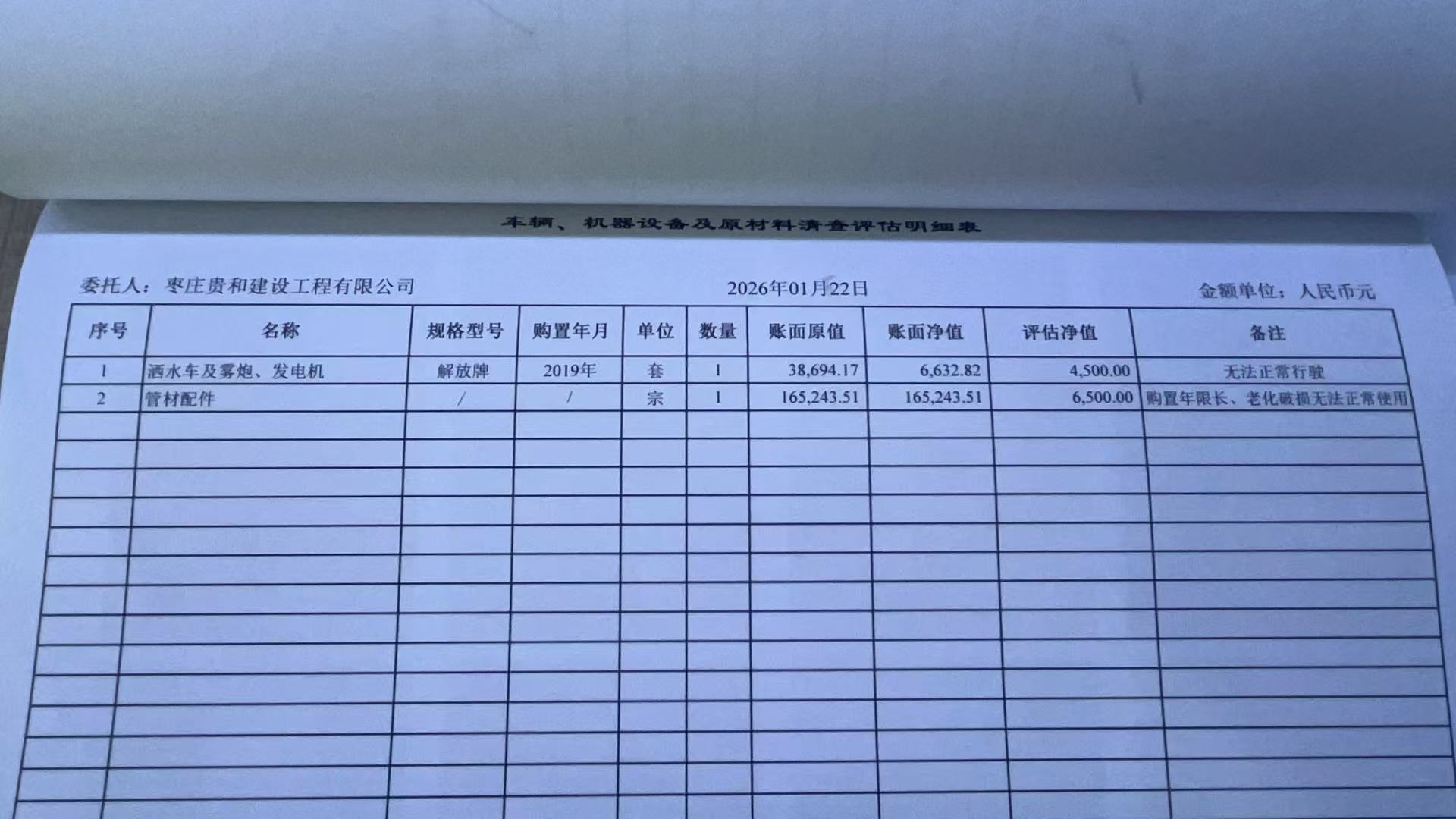 枣庄贵和建设工程有限公司所属固定资产及原材料资产处置