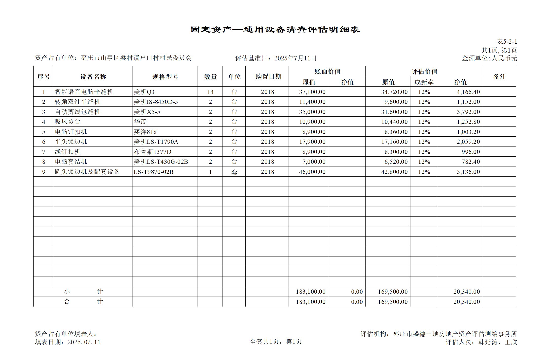 标的名称:枣庄市山亭区桑村镇户口村村民委员会所属缝纫设备处置LNGZ2025-90