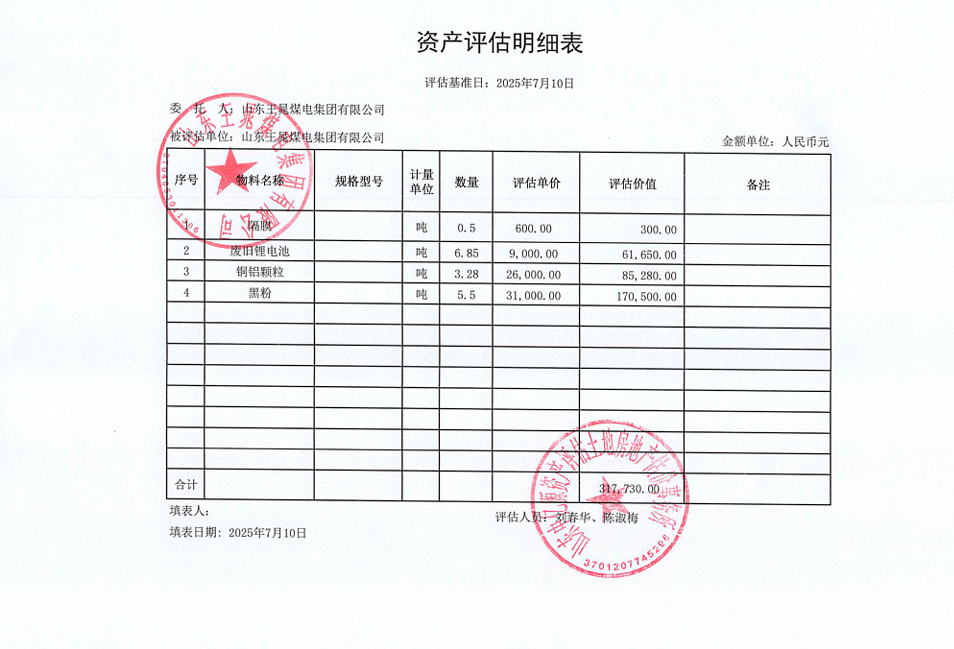 评估报告文号:山东中亿源评报字(2025)第1137号《资产评估报告书》