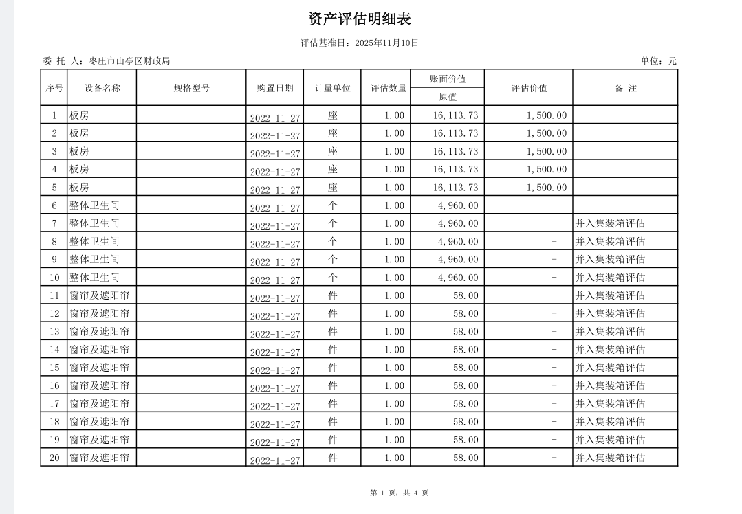 山亭区区级政府公物仓内闲置资产处置-1包标的