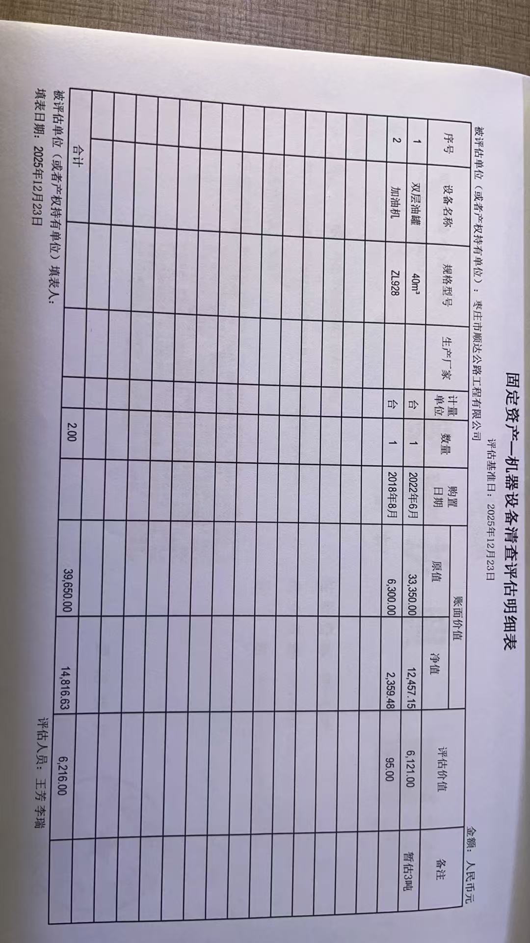 枣庄市顺达公路工程有限公司所属废旧油罐及加油机资产处置