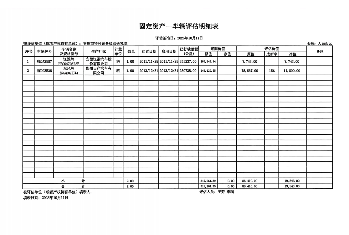 | 标的名称枣庄市特种设备检验研究院所属资产处置-B车辆处置 |