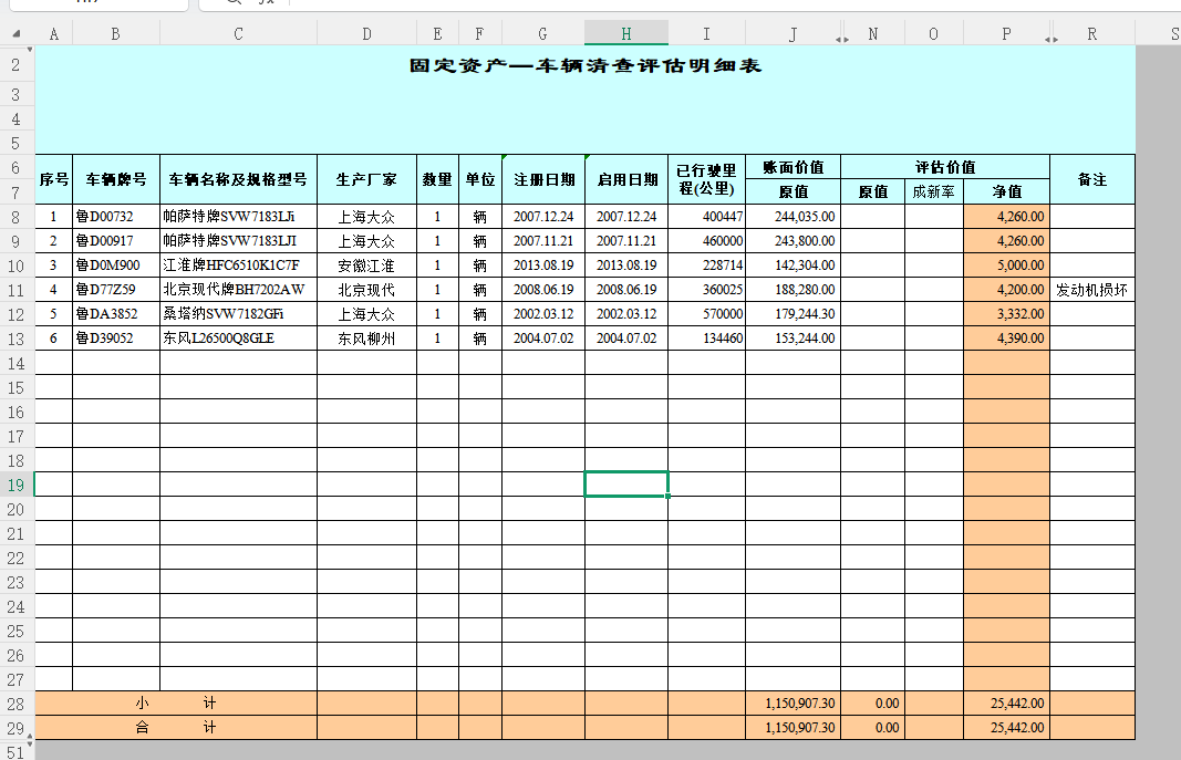 | 评估明细表 |